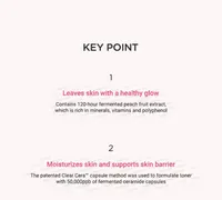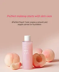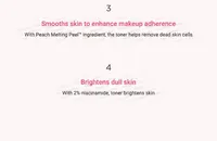 A hydrating essence toner with 77% Prunus Persica (Peach) Fruit Extract that helps creating a longlasting and smooth makeup base.