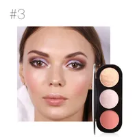Easy to pigmented, soft and long-lasting natural color,light and dark combination, create a three-dimensional face Brilliant bright beads, meticulous powder, natural and breathable, give you a natural blush feeling Three-dimensional decoration, fine particle powder, fine adhesion, fully diffused. Creates a moisturizing skin with a smooth skin surfaceA multi-purpose box to create a light makeup * Use the finger or puff edge to take the right amount powder on the forehead nose and chin and the eyes edge, pat and apply, showing a three-dimensional makeup * Apply a proper amount powder to your entire eyelids with your fingers to give your eyes a good look.01: suitable for fair skin beauties,light pink, easy to create a pink sweet, sturdy and elegant makeup,showing charming small V face 02: suitable for all skin color beauties, sunny and energetic, creating a playful and lively look, the cheeks are softer and more natural 03: soft and fresh, suitable for natural skin color beauties, three colors mix and match different styles, very temperament color, very mature,easy to create a three-dimensional faceIngredient: WATER, TALC, Mica, SILICA, ETHYLHEXYL PALMITATE, MINERAL OIL, CAPRYLIC/CAPRIC TRIGLYCERIDE, MAGNESIUM STEARATE, BIS-DIGLYCERYL POLYACYLADIPATE-2, MAGNESIUM ALUMINUM SILICATE, POLYISOBUTENE, SORBITAN STEARATE, DIMETHICONE, TIN OXIDE, BHT, METHYLPARABEN, PROPYLPARABEN, MAY CONTAIN: CI 77492, CI 77491, CI 77499, CI 15850, CI 77891, CI 77019.