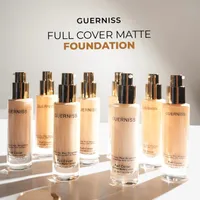 The Guerniss Full Cover Matte Foundation is designed for those who want full coverage without heaviness. Its advanced formula combines mattifying agents with nourishing extracts, ensuring your complexion looks smooth, even, and shine-free all day. With built-in sun protection (Octinoxate 3% & Titanium Dioxide 1.6%), it shields your skin from harmful UV rays while providing a flawless finish.