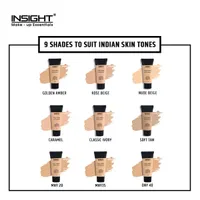 The Insight Stay Matte Liquid Foundation provides a full coverage, oil-free, studio finish look and is great for everyday wear. Its smudge-proof formula ensures you a complete mattified look that stays put all day. What's more? It is waterproof, cruelty and paraben free.