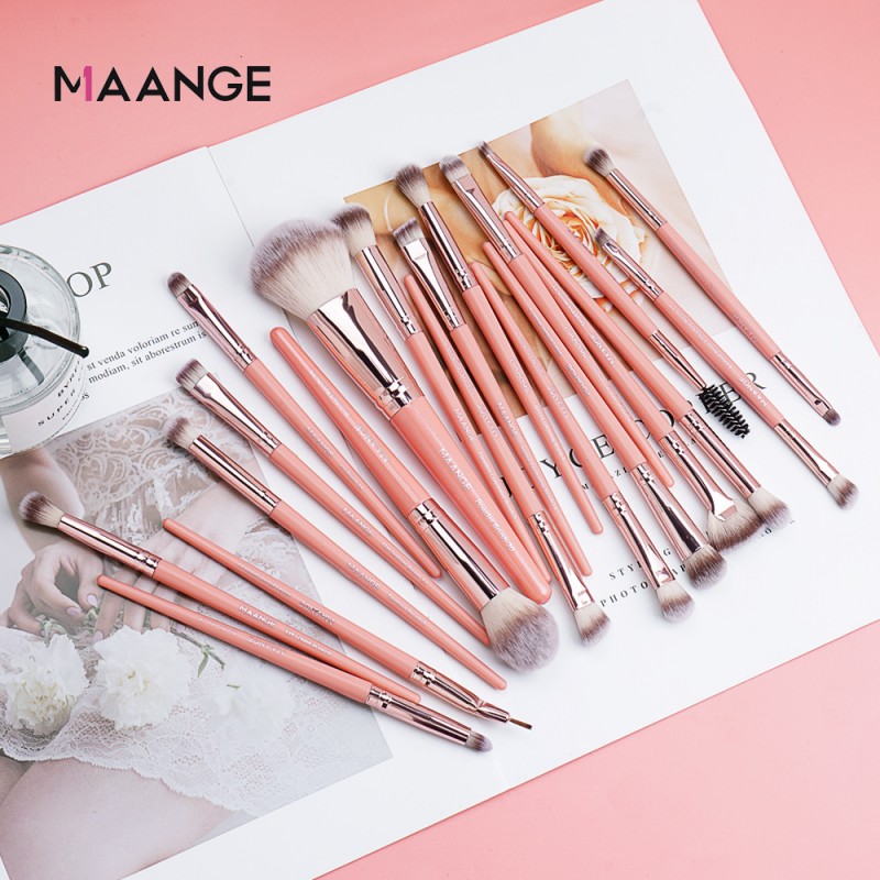 MAANGE 20 Pcs Pink Box Makeup Brushes Set