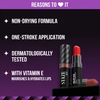 Let your lips be the ‘talk’ of the town with Staze 9to9 Velvet Kiss Lipstick! A one-swipe wonder, this luxurious velvety-smooth formula envelopes your lips in the perfect amount of pigment from the get-go with its 12-hour staying power! It is infused with Vitamin E for lip-loving hydration, ensuring the lips stay supple & moisturized from dusk till dawn. Its C-Lock Technology™ delivers no more smudging, budging & feathering, just an effortless glide with non-drying, comfortable wear. Get ready to Lip, Set, and Go!