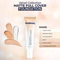 Velvet Collection Matte Full Cover Foundation Formulated with Egyptian lotus and sacred lotus extracts, this matte full-coverage foundation will provide a soft filter look that.