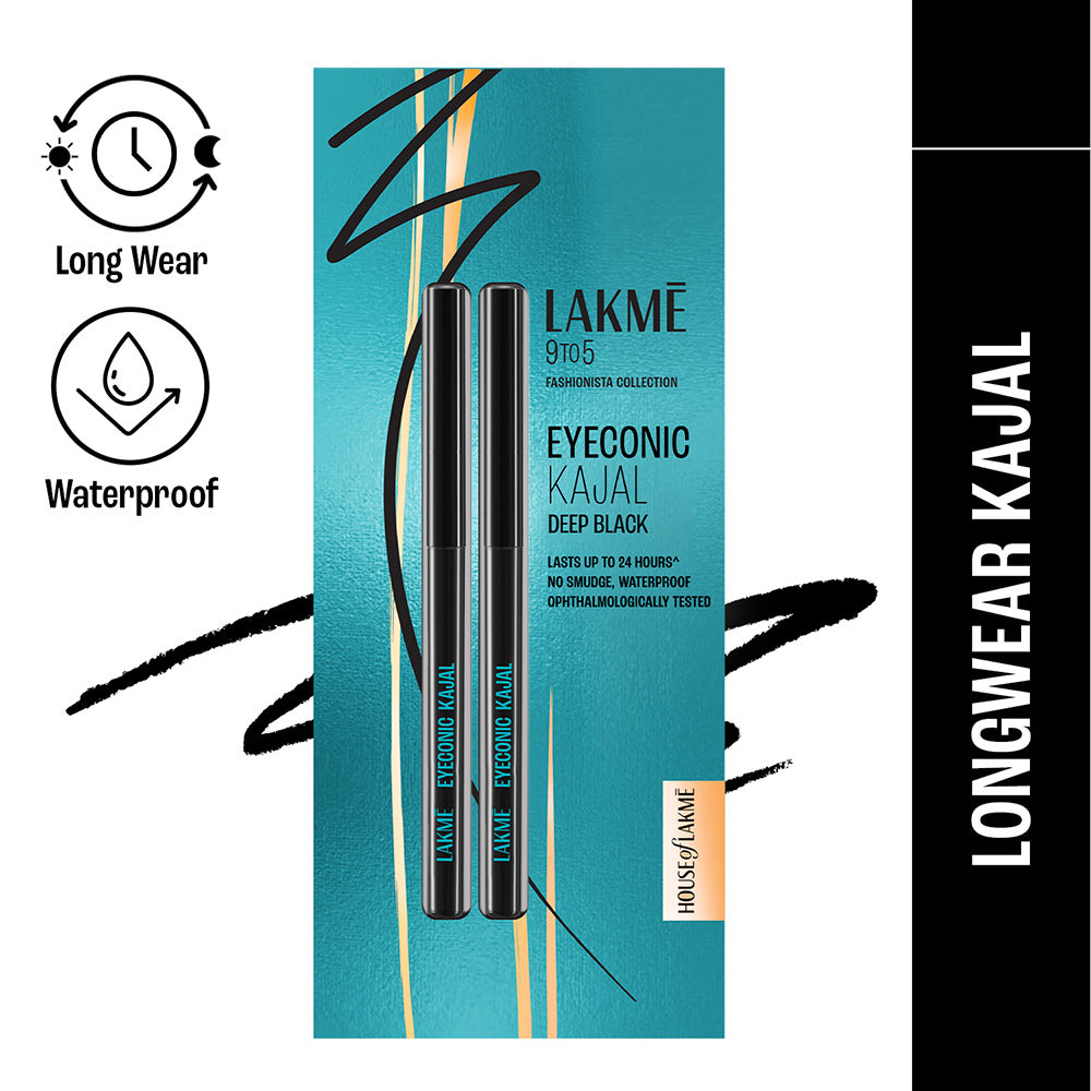 The Lakme Eyeconic Kajal Twin Pack gives a deep black color to the eyes. The kajal lasts long and looks bold. The deep black kajal makes eyes stand out clearly. The long-lasting kajal stays fresh for hours. The smudge-proof kajal does not blur easily.