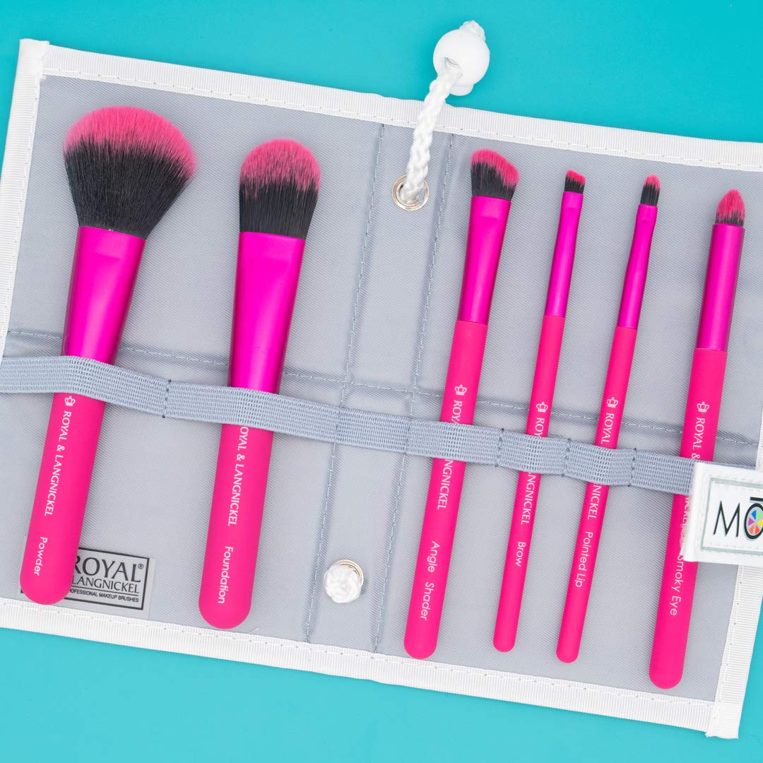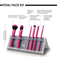 COMPLETE 7 PIECE TRAVEL SIZE MAKEUP BRUSH SET - This set has all the essentials to create your perfect full face look. Set includes the following brushes - Powder, Foundation, Angle Shader, Smokey Eye, Brow Liner and Pointed Lip.